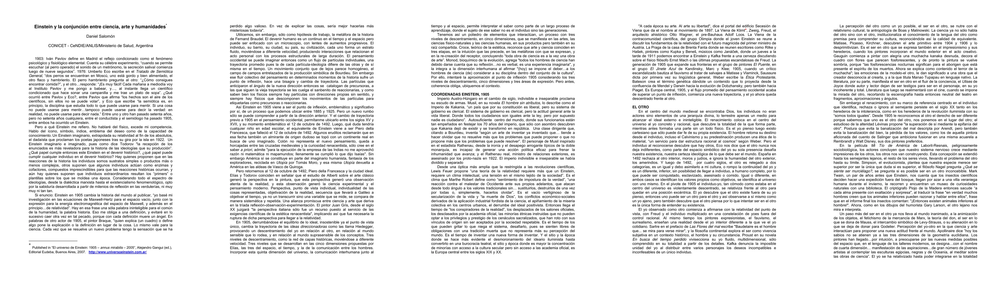 Western thinking underwent a turning point between 1885 and 1925. Einstein in 1905 symbolizes the emblematic hinge of this change of direction. To find an equivalent phenomenon in the past we need to go back to the period from the XV century to the XVII century. It was not a mere reform of codes but a new code. In 1905 the perception of reality changed through the introduction of relativism in three levels of the reference systems: the ego-other relation, the world perceived by the senses, and the 'ideal' universe of the concepts. We will try to identify how this change was expressed and developed in the cited levels, both in the physic and nature based sciences, in the social sciences, and in literature and fine arts. Today, 100 years after, the 1905's generation still proposes us two options: to live sheltered by the dogma that reassures us with its only and exclusive viewpoint claimed objective, or to dare to live with the multiple, the transient, the relative. The first way led to the worst regimes and intolerant ideas of the XX century, the second option throws us into the uncertainty of the creative adventure, but also leads us to the possibility of a fairer society in the XXI century.