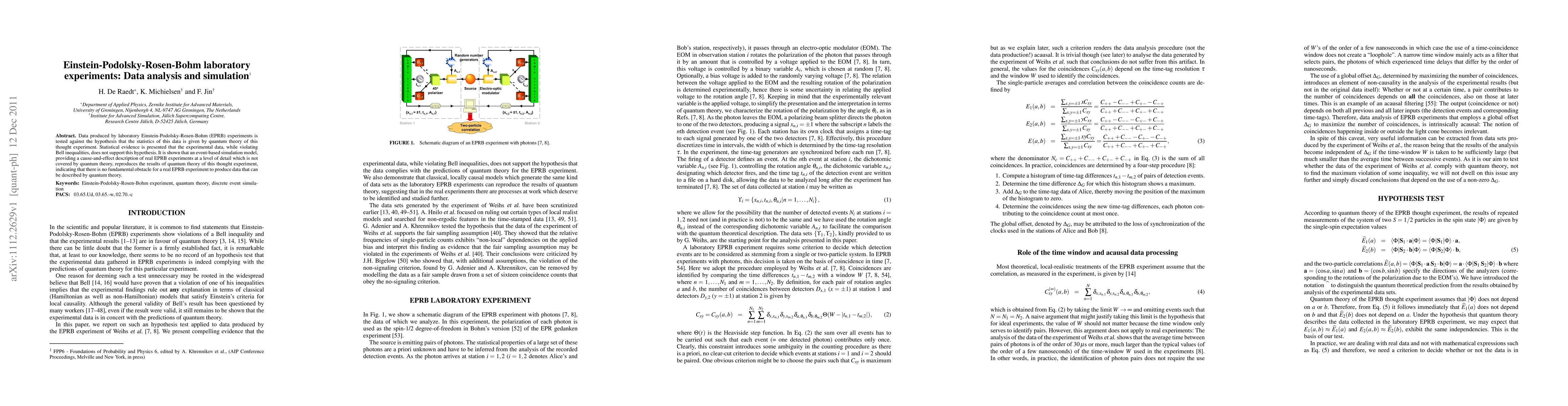 Data produced by laboratory Einstein-Podolsky-Rosen-Bohm (EPRB) experiments is tested against the hypothesis that the statistics of this data is given by quantum theory of this thought experiment. Statistical evidence is presented that the experimental data, while violating Bell inequalities, does not support this hypothesis. It is shown that an event-based simulation model, providing a cause-and-effect description of real EPRB experiments at a level of detail which is not covered by quantum theory, reproduces the results of quantum theory of this thought experiment, indicating that there is no fundamental obstacle for a real EPRB experiment to produce data that can be described by quantum theory.