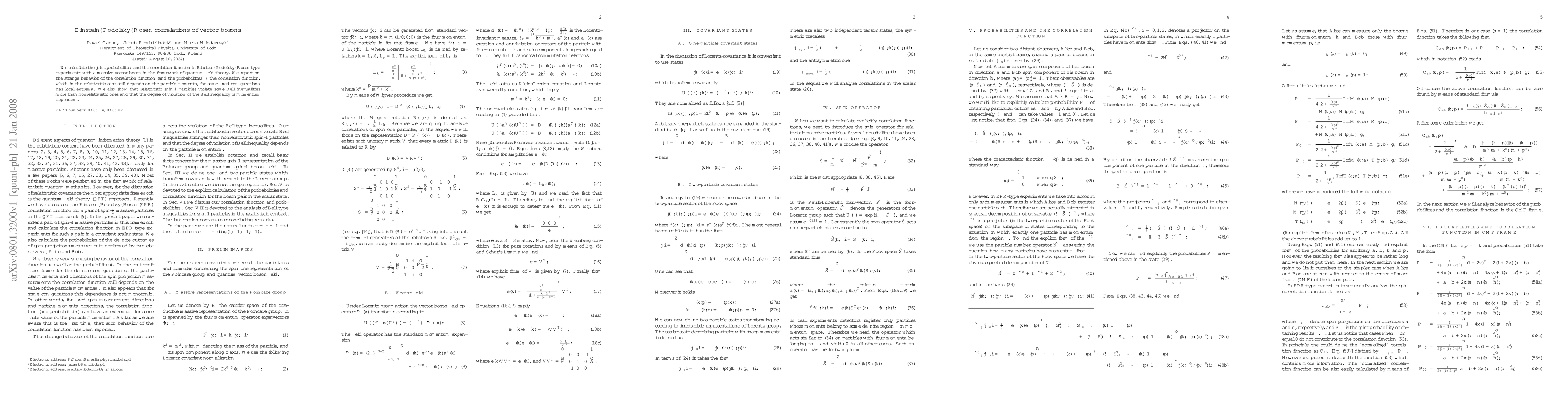 This paper investigates Einstein-Podolsky-Rosen correlations in quantum field theory for massive vector bosons, revealing unusual behavior in the correlation function with local extrema for certain configurations. It also finds that relativistic spin-1 particles exhibit greater violation of Bell inequalities than nonrelativistic ones, with the degree of violation being momentum dependent.