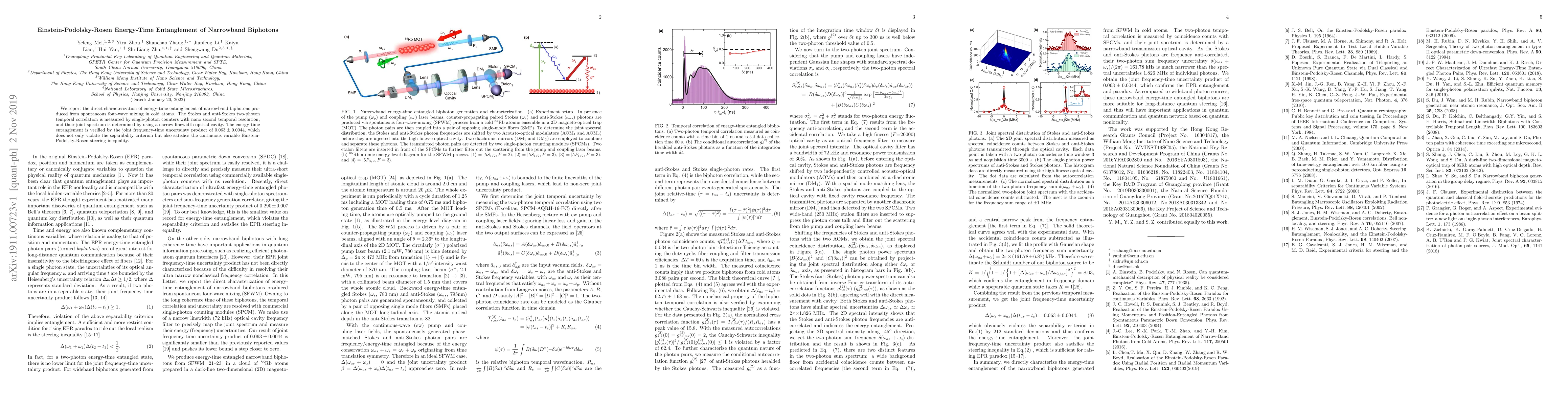 This paper characterizes energy-time entanglement in narrowband biphotons from cold atoms, demonstrating a joint frequency-time uncertainty product that violates separability and satisfies the Einstein-Podolsky-Rosen steering inequality. The study uses single-photon counters and a narrow linewidth optical cavity to measure temporal correlations.
