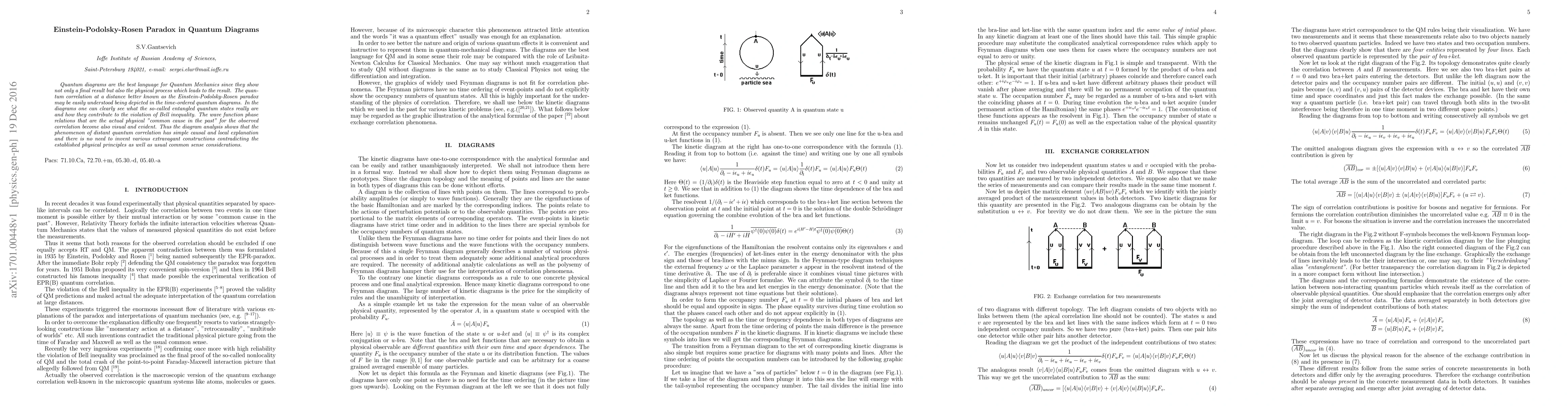 Quantum diagrams are the best language for Quantum Mechanics since they show not only a final result but also the physical process which leads to the result. The quantum correlation at a distance better known as the Einstein-Podolsky-Rosen paradox may be easily understood being depicted in the time-ordered quantum diagrams. In the diagrams one can clearly see what the so-called entangled quantum states really are and how they contribute to the violation of Bell inequality. The wave function phase relations that are the actual physical "common cause in the past" for the observed correlation become also visual and evident. Thus the diagram analysis shows that the phenomenon of distant quantum correlation has simple causal and local explanation and there is no need to invent various extravagant constructions contradicting the established physical principles as well as usual common sense considerations.