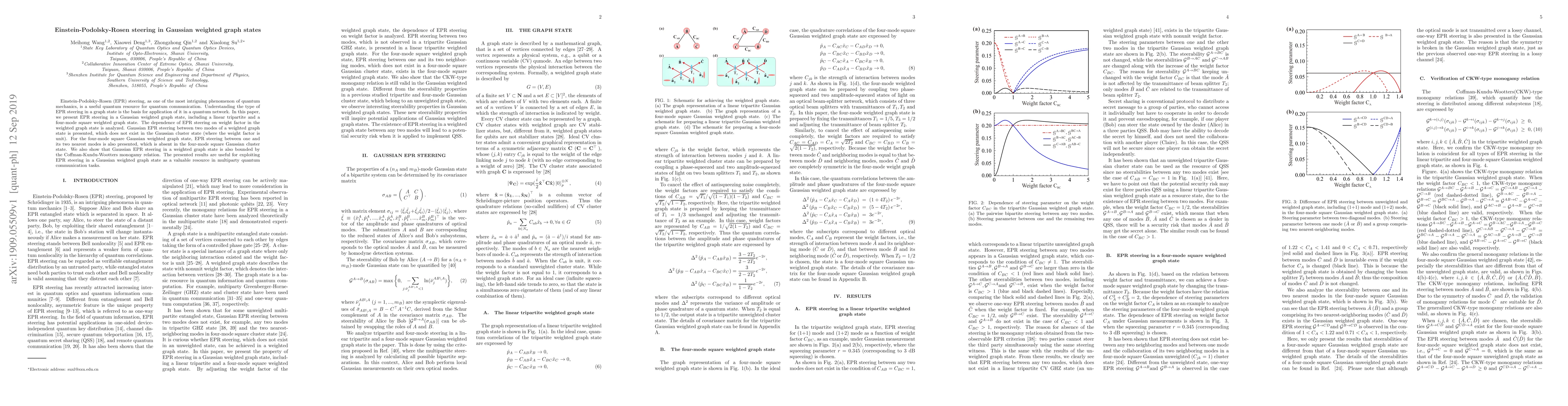 This paper investigates Einstein-Podolsky-Rosen (EPR) steering in Gaussian weighted graph states, revealing unique steering phenomena not present in Gaussian cluster states, and demonstrating its bounded nature by the Coffman-Kundu-Wootters monogamy relation, thus enhancing its potential for multiparty quantum communication.