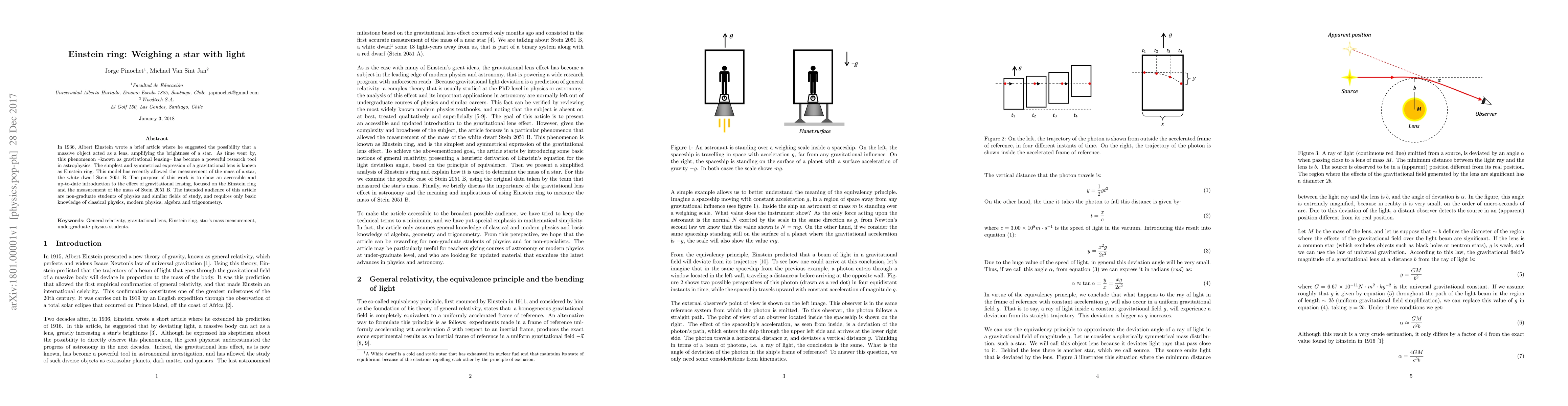 Researchers used Einstein rings to measure the mass of a white dwarf star, Stein 2051 B, providing an accessible introduction to gravitational lensing for non-expert audiences.