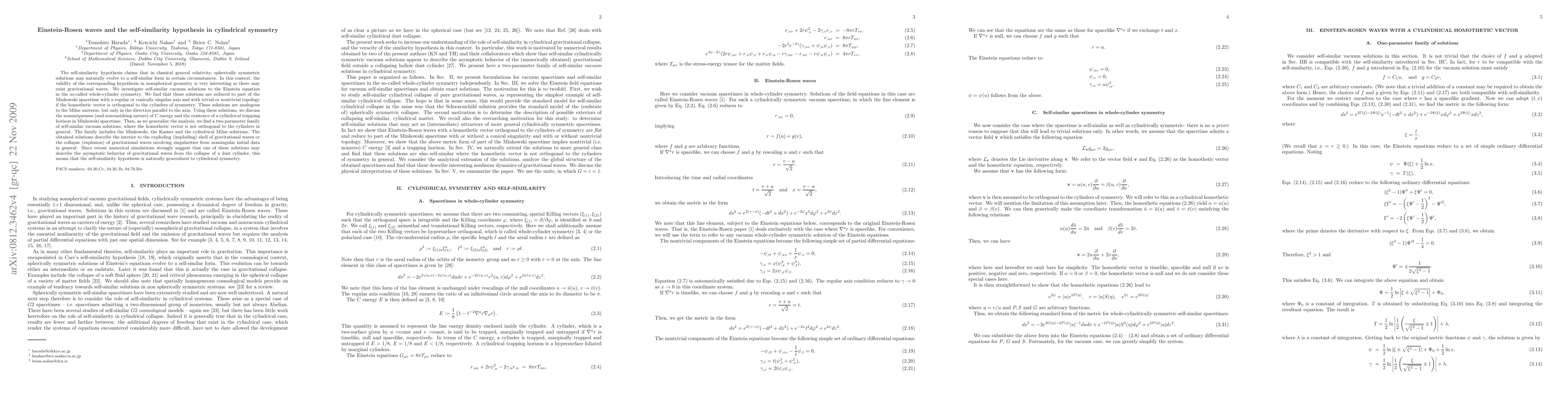 This paper explores self-similar vacuum solutions to the Einstein equation in cylindrical symmetry, finding that they reduce to parts of Minkowski spacetime with singular or trivial topologies. The study generalizes the self-similarity hypothesis to cylindrical geometry, revealing a two-parameter family of solutions that describe gravitational wave phenomena, including the collapse of a dust cylinder.