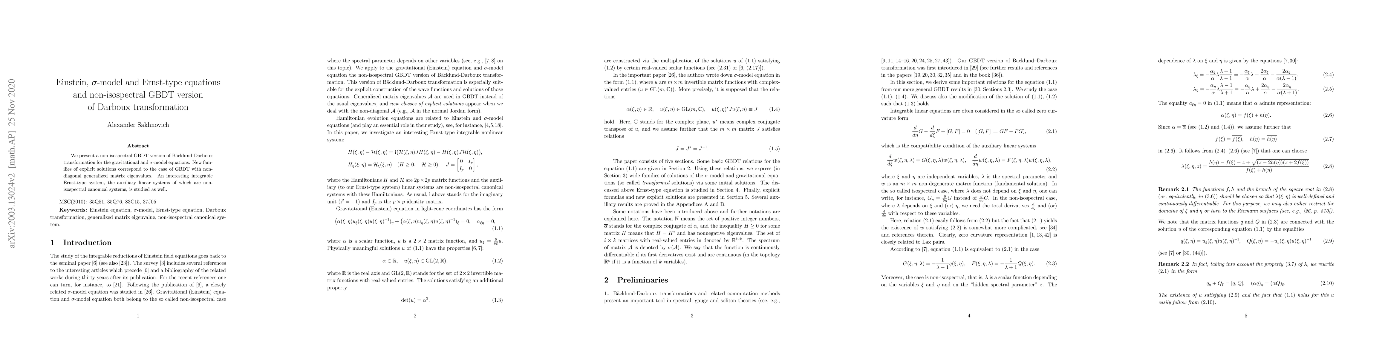 This paper introduces a novel non-isospectral version of the Darboux transformation for gravitational and σ-model equations, revealing new families of explicit solutions tied to non-diagonal generalized matrix eigenvalues. It also explores an integrable Ernst-type system with non-isospectral canonical auxiliary linear systems.