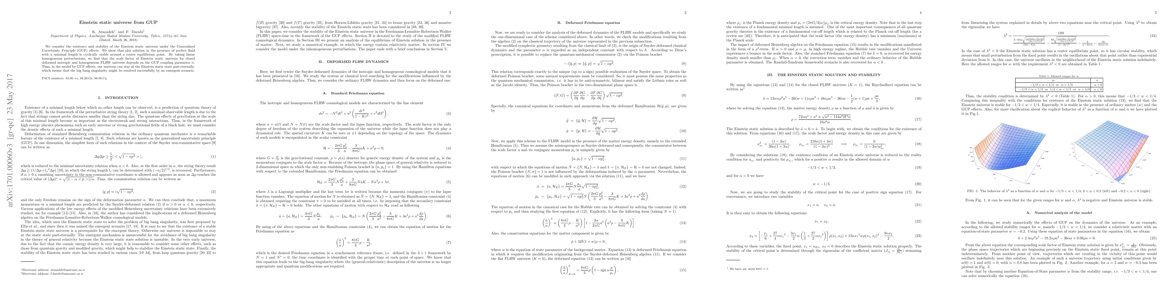 This paper investigates the stability of the Einstein static universe under the Generalized Uncertainty Principle (GUP), showing cyclical stability around an equilibrium point and resolving the big bang singularity through a minimal length effect, suggesting an emergent scenario for a past-eternally static universe.