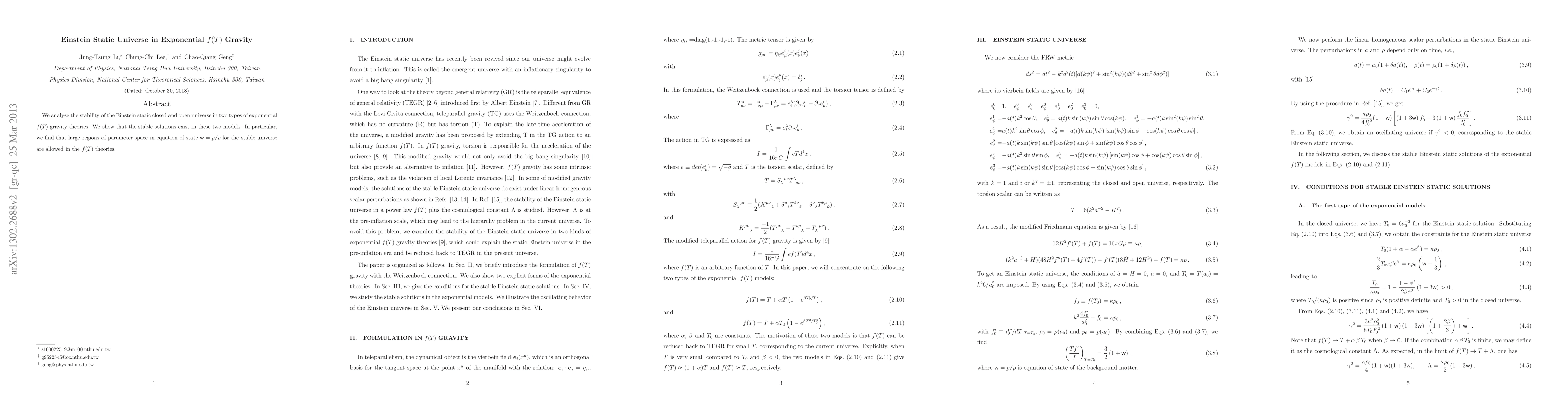 This paper investigates the stability of the Einstein static universe in two types of exponential $f(T)$ gravity theories, demonstrating that stable solutions exist and large regions of parameter space for the equation of state $w=p/\rho$ are permissible in these models.