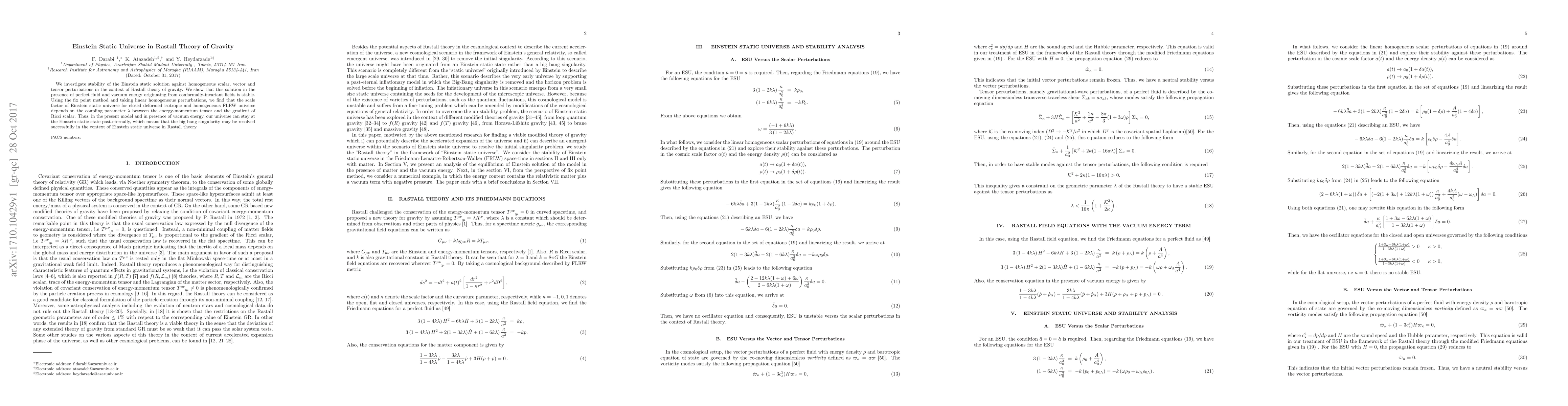This paper explores the stability of the Einstein static universe solution in Rastall gravity theory against various perturbations, demonstrating its stability in the presence of perfect fluid and vacuum energy. The study reveals that the universe can remain in a static state indefinitely, potentially resolving the big bang singularity.