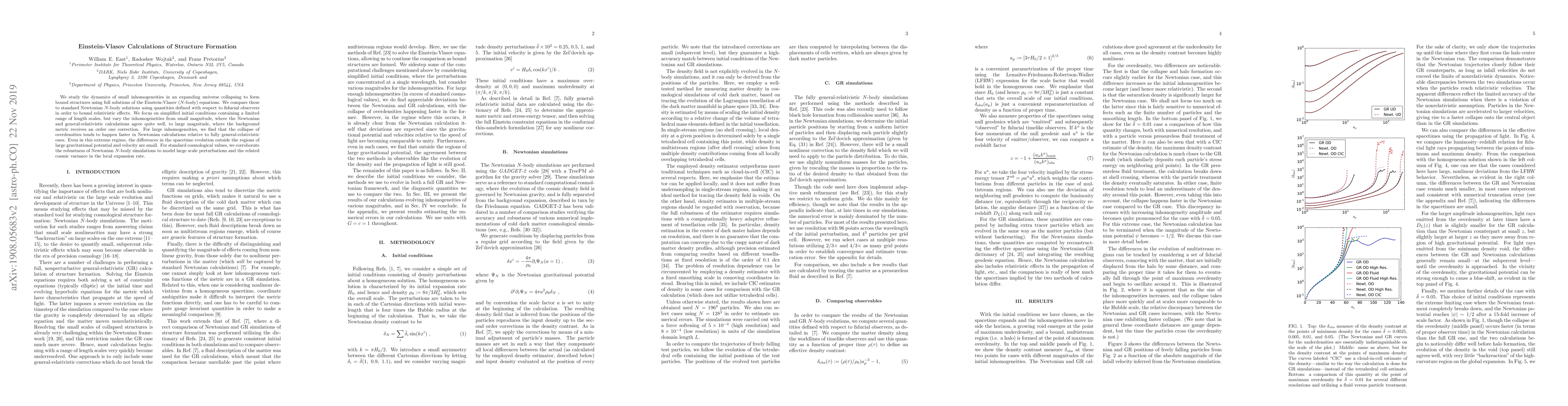 We study the dynamics of small inhomogeneities in an expanding universe collapsing to form bound structures using full solutions of the Einstein-Vlasov (N-body) equations. We compare these to standard Newtonian N-body solutions using quantities defined with respect to fiducial observers in order to bound relativistic effects. We focus on simplified initial conditions containing a limited range of length scales, but vary the inhomogeneities from small magnitude, where the Newtonian and general-relativistic calculations agree quite well, to large magnitude, where the background metric receives an order one correction. For large inhomogeneities, we find that the collapse of overdensities tends to happen faster in Newtonian calculations relative to fully general-relativistic ones. Even in this extreme regime, the differences in the spacetime evolution outside the regions of large gravitational potential and velocity are small. For standard cosmological values, we corroborate the robustness of Newtonian N-body simulations to model large scale perturbations and the related cosmic variance in the local expansion rate.