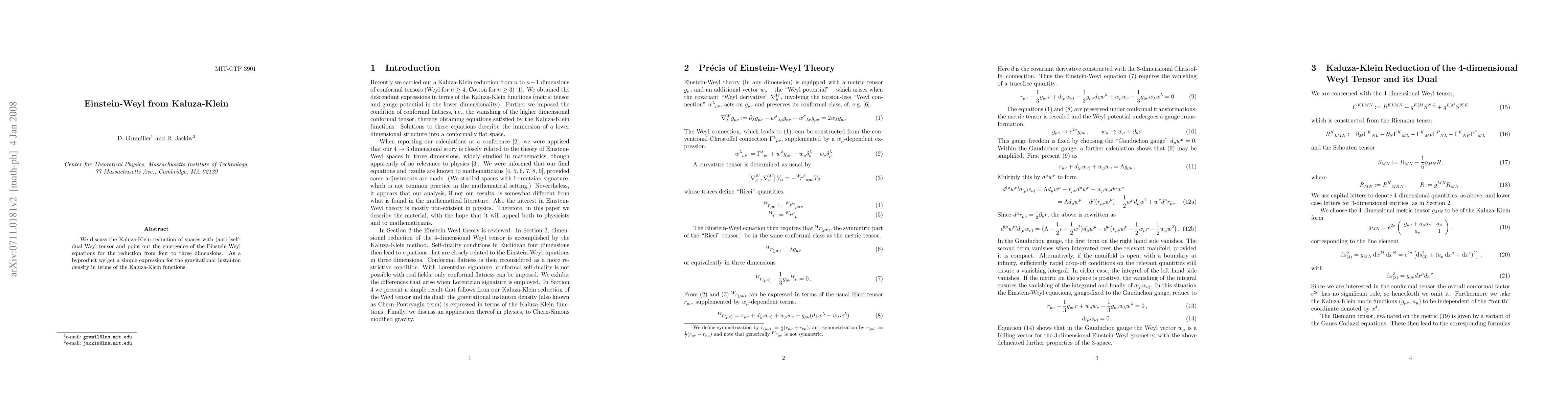 This paper explores the Kaluza-Klein reduction of spaces featuring (anti-)self-dual Weyl tensors, leading to the derivation of Einstein-Weyl equations when reducing from four to three dimensions. It also provides a straightforward expression for the gravitational instanton density using Kaluza-Klein functions.