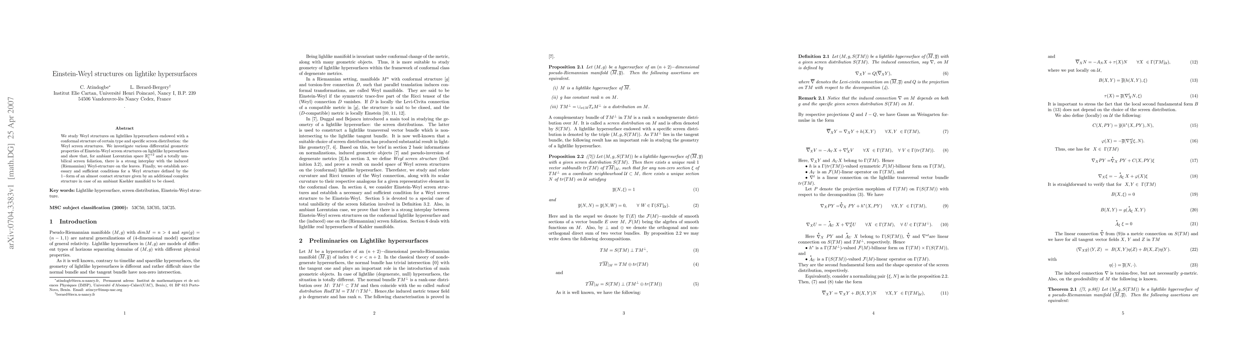 This paper explores Weyl structures on lightlike hypersurfaces with specific conformal and screen distributions, focusing on Einstein-Weyl screen structures. It reveals a strong interaction between these structures and the induced Riemannian Weyl-structure on the leaves, and provides conditions for a Weyl structure to be closed in the context of ambient Kähler manifolds.