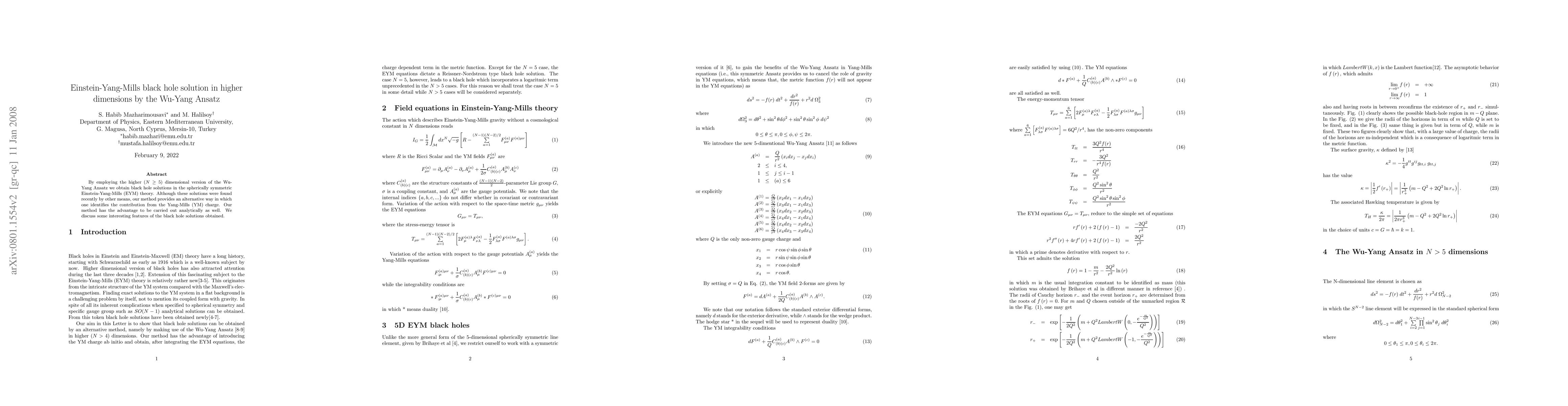 This paper uses the higher-dimensional Wu-Yang Ansatz to derive black hole solutions in spherically symmetric Einstein-Yang-Mills theory, providing an alternative analytical method to identify Yang-Mills charge contributions. The study highlights some unique features of the resulting black hole solutions.