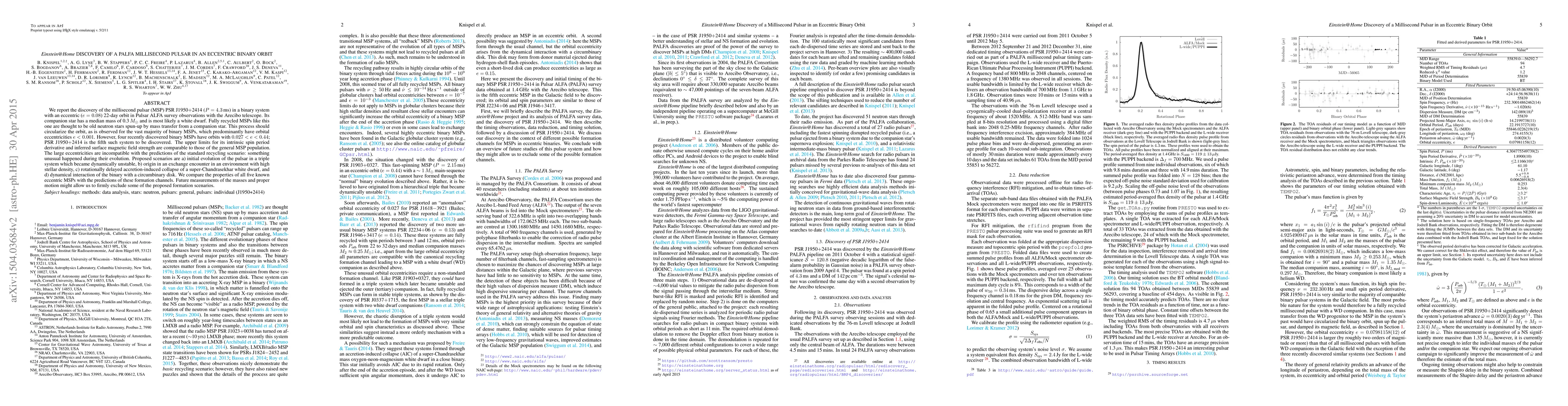 This paper reports the discovery of a millisecond pulsar, PSR J1950+2414, in a rare eccentric binary orbit with a white dwarf companion. The unusual orbit challenges standard recycling models, prompting exploration of alternative formation scenarios.