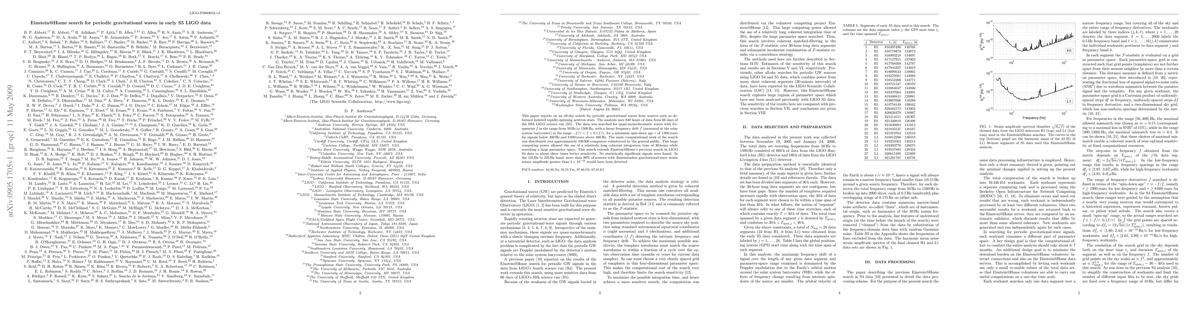 This paper reports on an all-sky search for periodic gravitational waves using 840 hours of early S5 LIGO data, finding no significant signals but achieving three times better sensitivity than previous searches. The distributed Einstein@Home project utilized 100,000 public computers to analyze a wide frequency range.