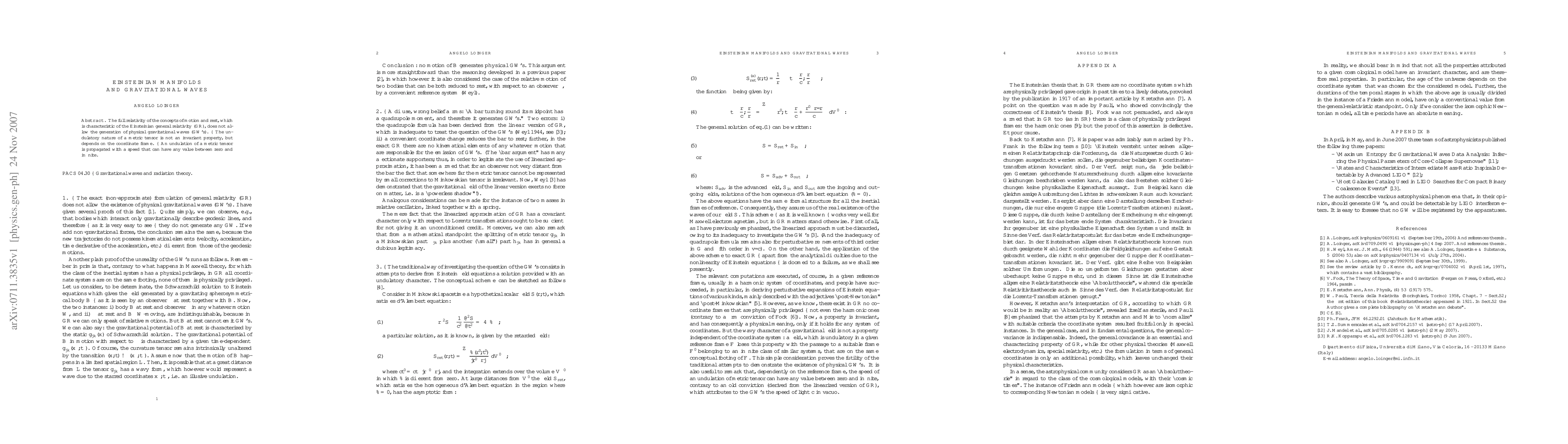 Einsteinian manifolds cannot generate physical gravitational waves due to their undulatory nature, which is not an invariant property and can propagate with any speed between zero and infinity.