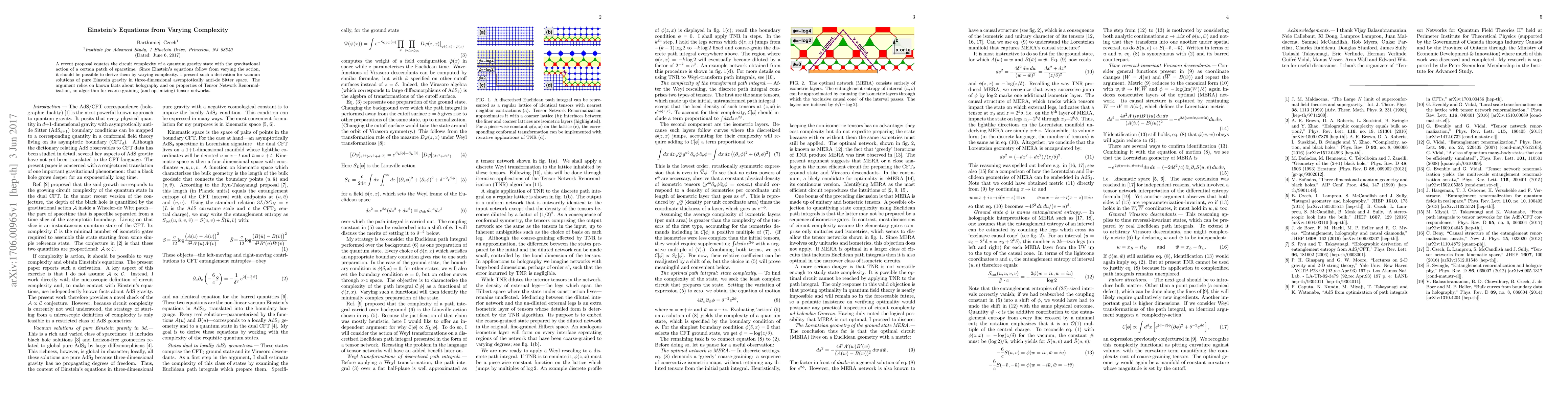Researchers show that Einstein's equations can be derived from varying complexity in a specific area of physics, shedding light on the connection between gravity and information theory. The study uses a new mathematical framework to connect quantum gravity to holography and tensor network renormalization.