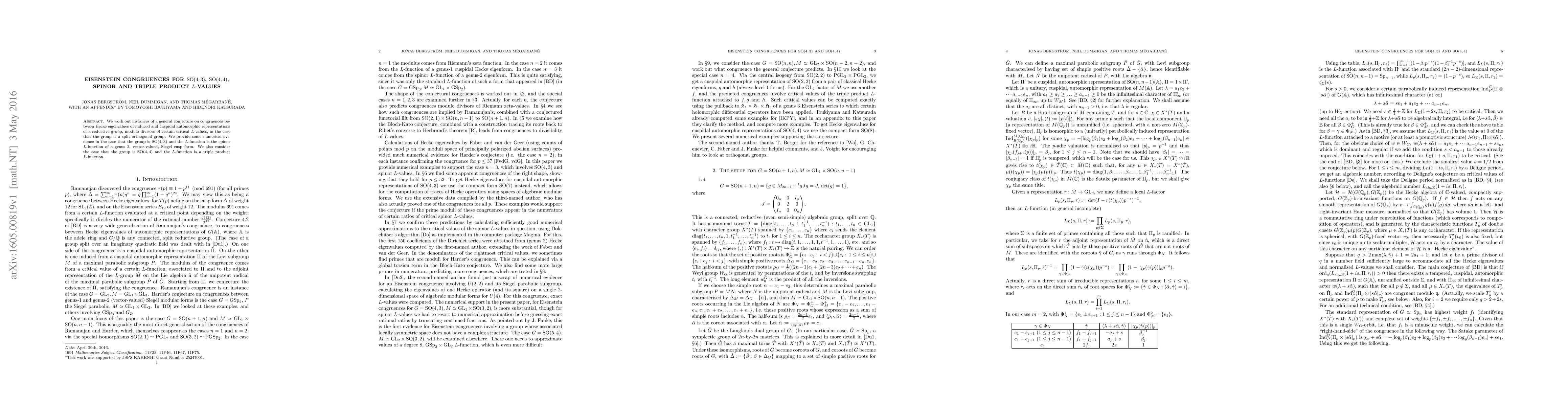 Research confirms congruences between Hecke eigenvalues of reductive groups modulo critical L-values for split orthogonal groups, providing numerical evidence in specific cases.