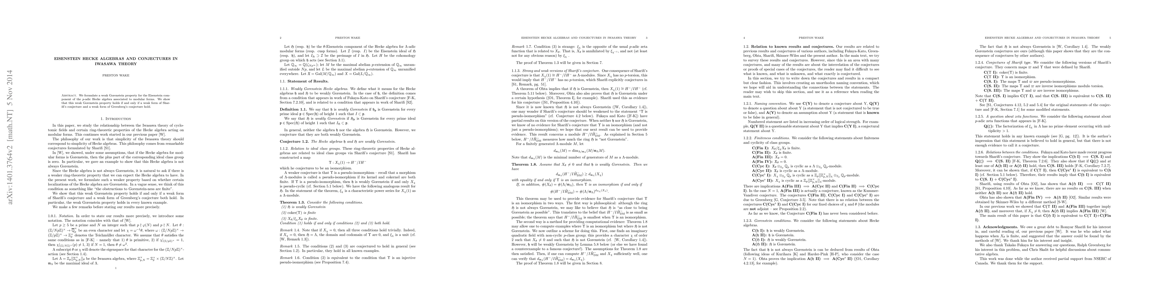 A research paper explores the relationship between Eisenstein Hecke algebras and conjectures in Iwasawa theory, showing that a weak Gorenstein property holds if and only if two related conjectures are true.