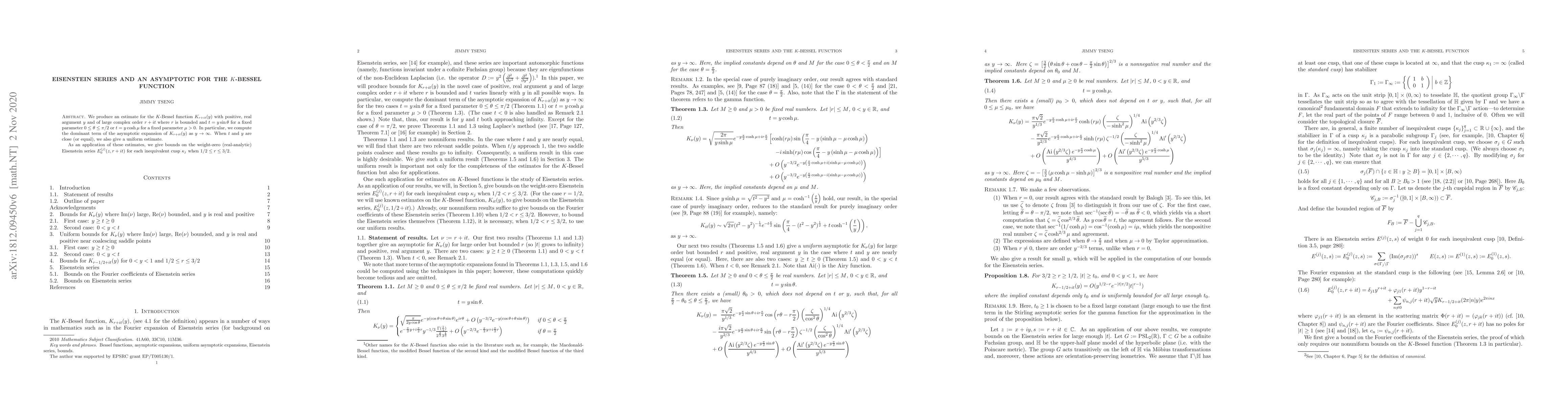 This paper provides an asymptotic estimate for the $K$-Bessel function $K_{r + i t}(y)$ as $y$ approaches infinity, focusing on large complex order $r+it$. It also derives bounds for the weight-zero Eisenstein series $E_0^{(j)}(z, r+it)$ using the derived asymptotic results.