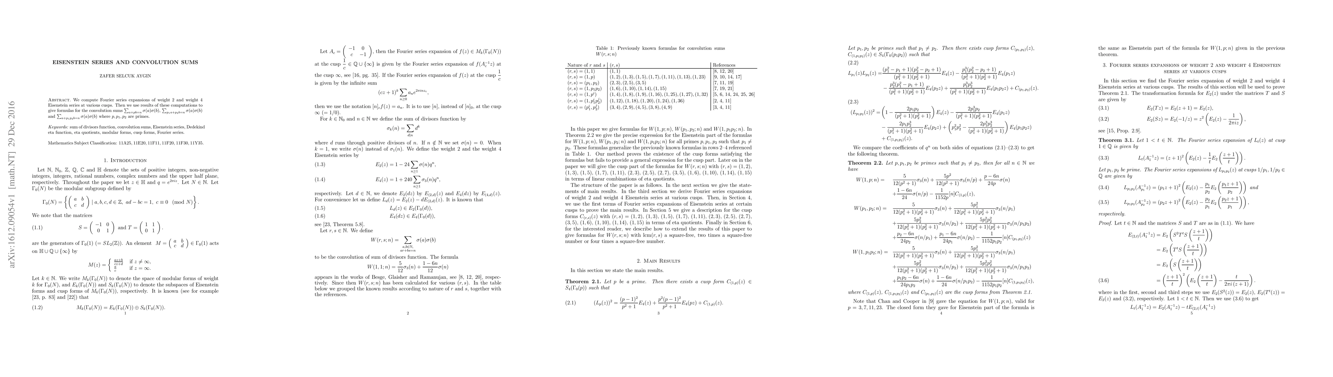 This paper computes Fourier series expansions of weight $2$ and $4$ Eisenstein series and uses these to derive formulas for specific convolution sums involving the sum of products of divisors of integers.