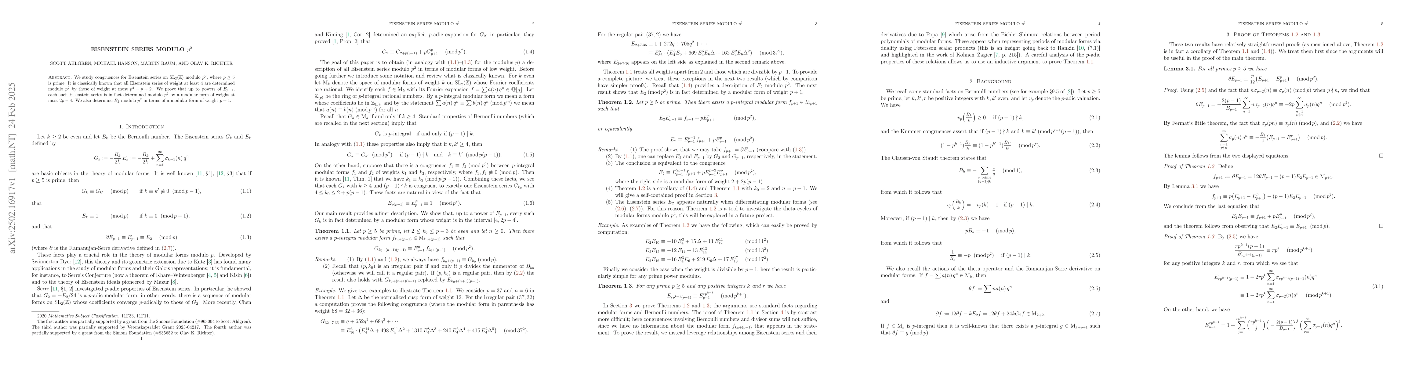 The work extends classical results by showing that Eisenstein series are determined by even lower-weight modular forms, introducing a novel perspective on their congruence properties.