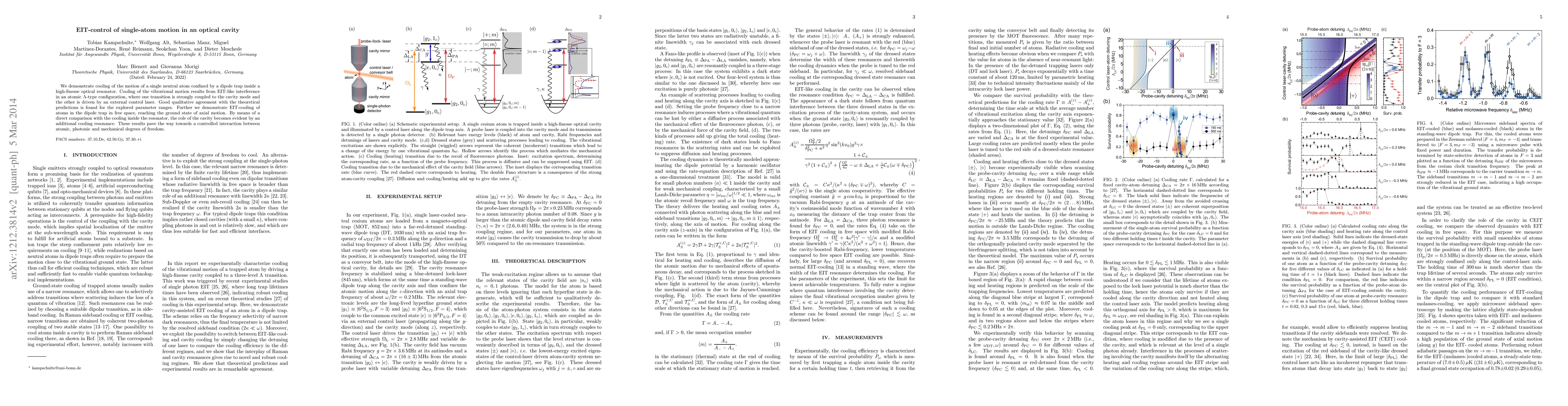 This paper demonstrates the cooling of a single atom's motion within an optical cavity using electromagnetically induced transparency (EIT) interference, showing agreement with theoretical predictions. The cavity's role in the cooling process is validated through comparison with free-space EIT cooling, paving the way for efficient photonic interfaces with single atoms.