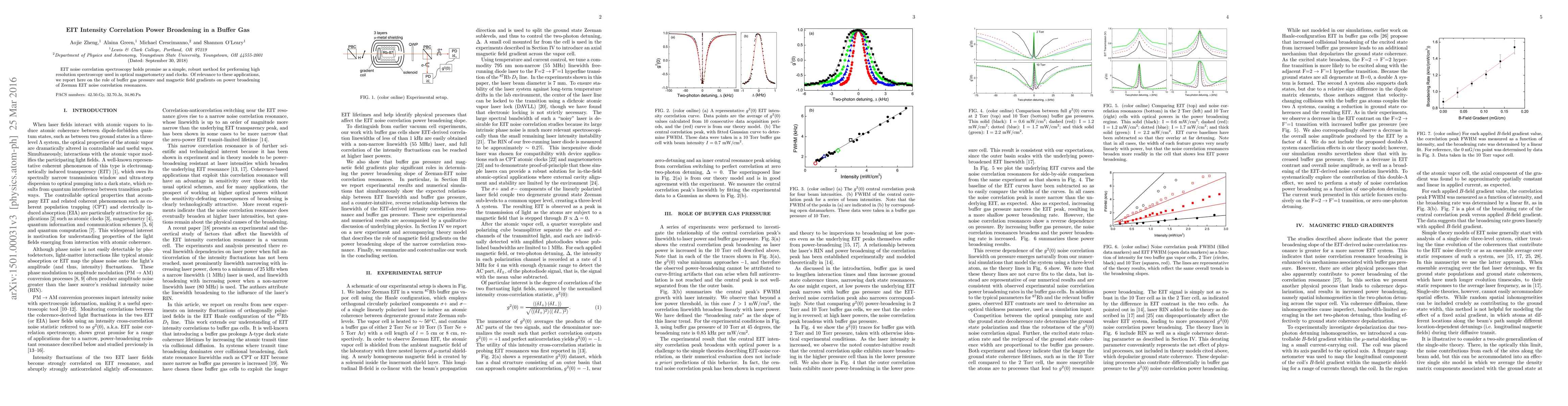 EIT noise correlation spectroscopy holds promise as a simple, robust method for performing high resolution spectroscopy used in optical magnetometry and clocks. Of relevance to these applications, we report here on the role of buffer gas pressure and magnetic field gradients on power broadening of Zeeman EIT noise correlation resonances.