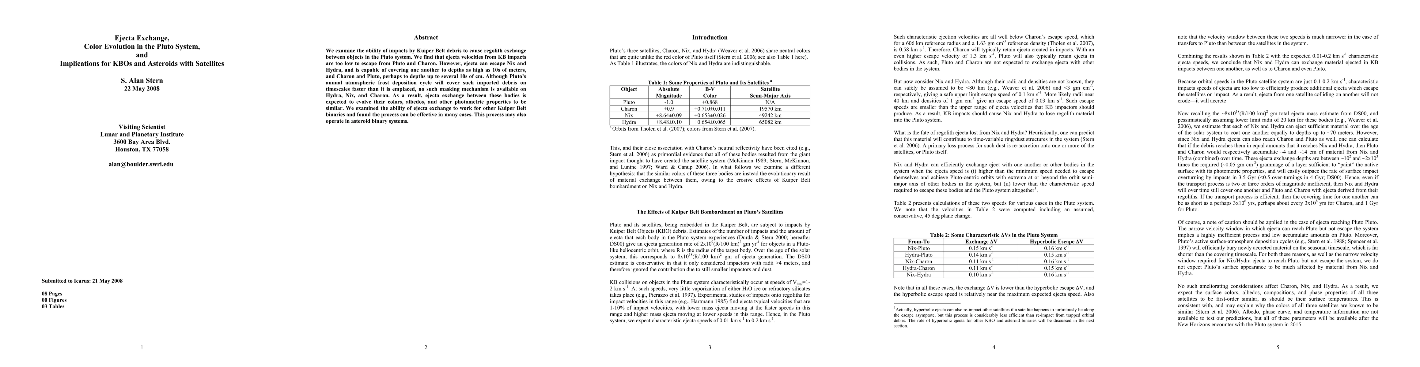 This study investigates the impact of Kuiper Belt debris on the Pluto system, finding that while ejecta from KB impacts cannot escape Pluto and Charon, it can from Nix and Hydra, affecting their surface colors and albedos. The process is also likely applicable to other Kuiper Belt binaries and asteroid systems.