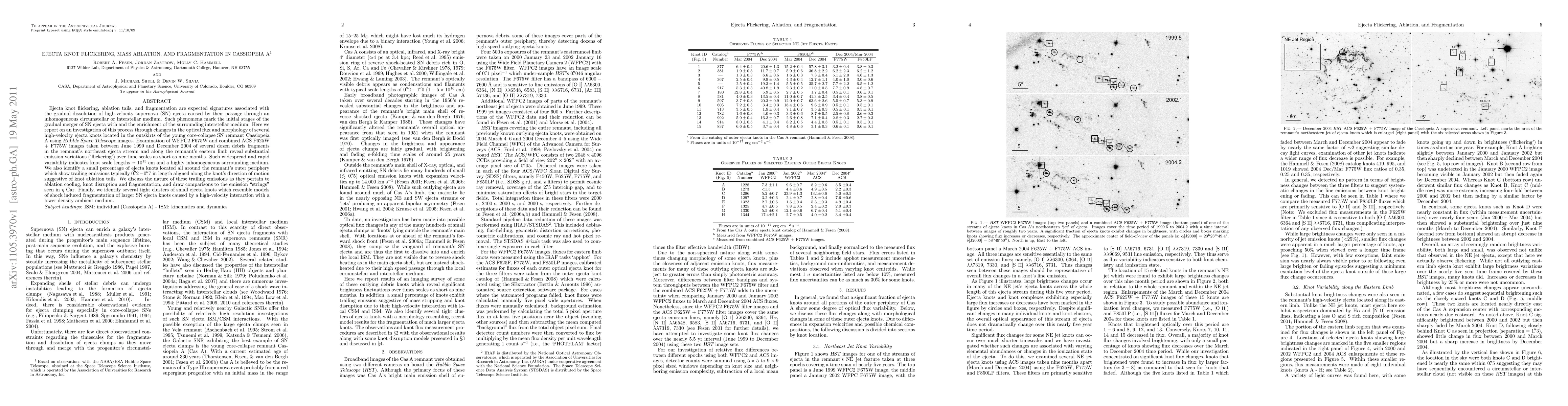 This study investigates the flickering, ablation tails, and fragmentation of high-velocity ejecta knots in Cassiopeia A using Hubble Space Telescope images, revealing rapid emission variations indicative of a highly inhomogeneous medium and identifying knots with ablation tails suggestive of ablation cooling and fragmentation processes.