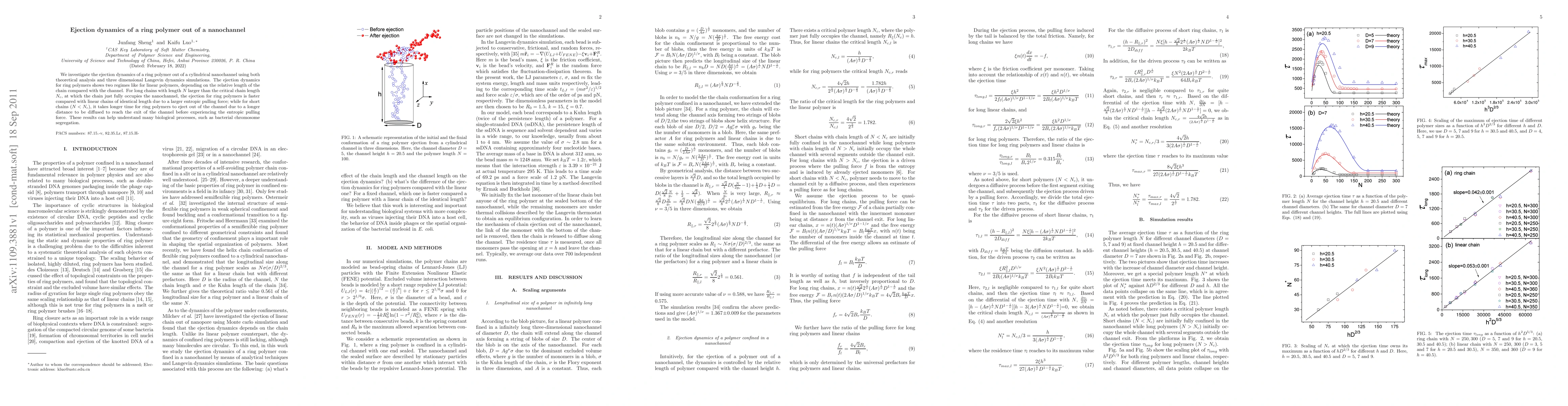 dynamics simulations. The ejection dynamics for ring polymers shows two regimes