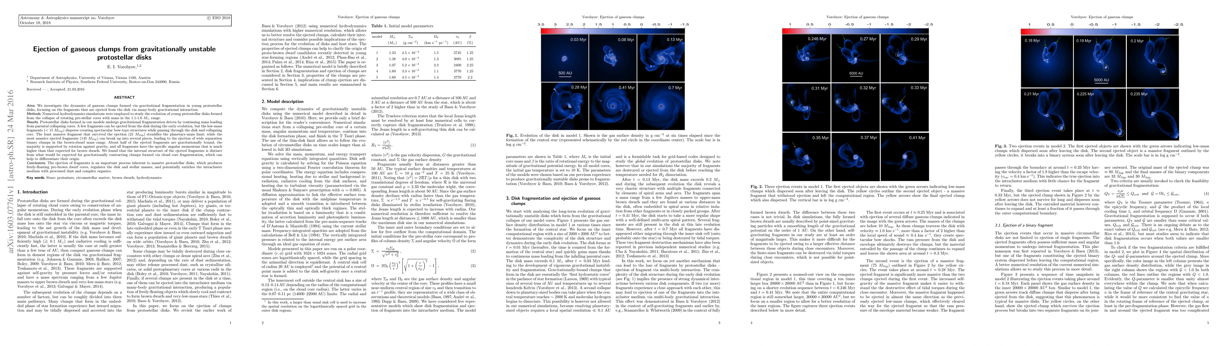 This study uses numerical simulations to explore the dynamics of gaseous clumps in gravitationally unstable protostellar disks, finding that fragments can be ejected via many-body gravitational interactions. These ejected fragments, ranging from planetary to brown-dwarf masses, often have high angular momentum, distinct internal structures, and play a role in regulating disk and stellar mass, as well as enriching the surrounding medium.