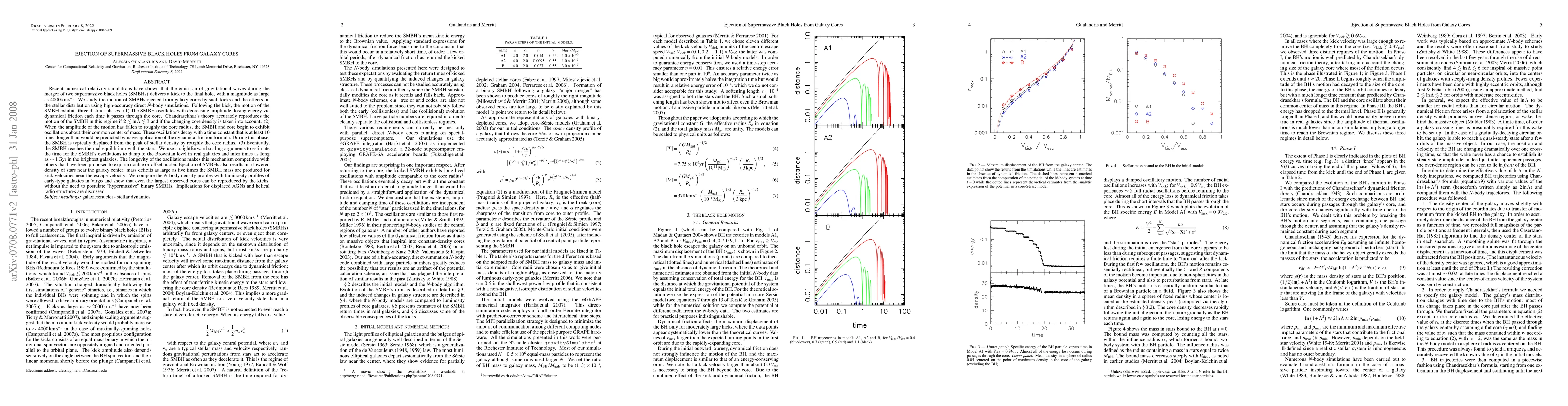 Supermassive black holes can be ejected from galaxy cores with enough gravitational wave kick, affecting their motion and leading to mass deficits and changes in star density, potentially explaining displaced AGNs and helical radio structures.