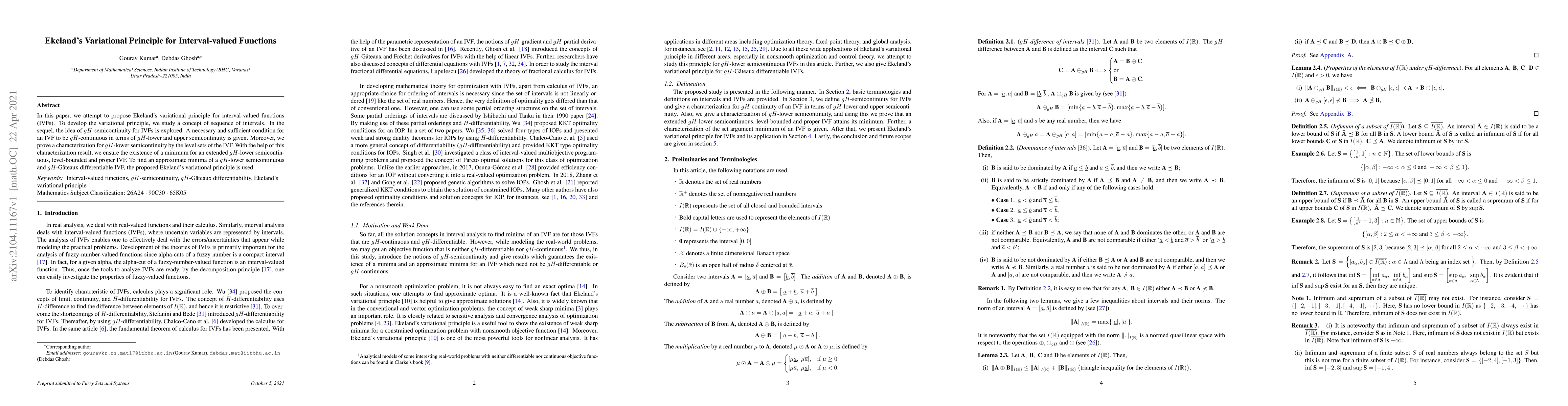 This paper proposes an extension of Ekeland's variational principle to interval-valued functions (IVFs), exploring gH-semicontinuity and providing necessary and sufficient conditions for gH-continuity. It ensures the existence of a minimum for certain IVFs and applies the proposed principle to find approximate minima.