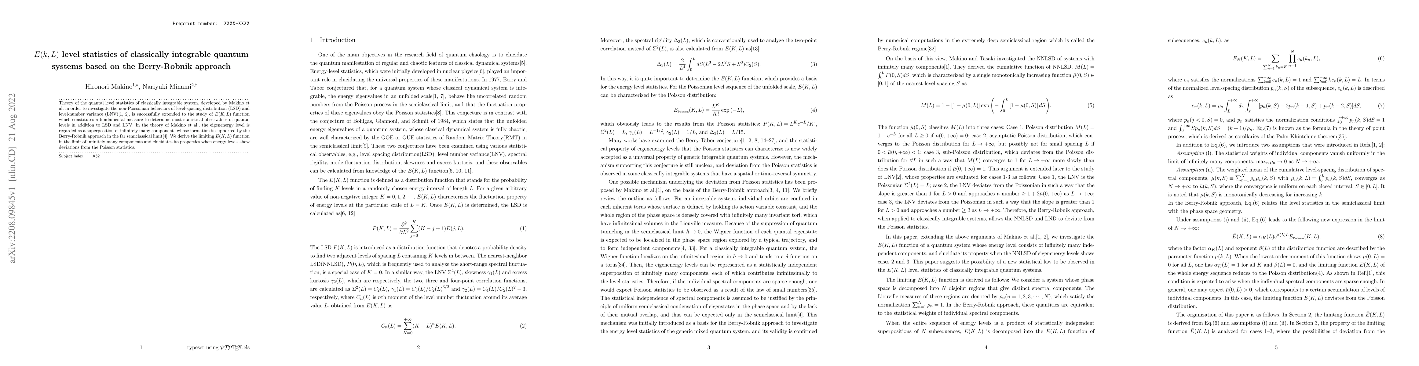 This paper extends Makino et al.'s theory for quantal level statistics in integrable quantum systems to the $E(K,L)$ function, which measures statistical observables of quantal levels. The authors derive the limiting $E(K,L)$ function in the semiclassical limit and analyze its properties when energy levels deviate from Poisson statistics.