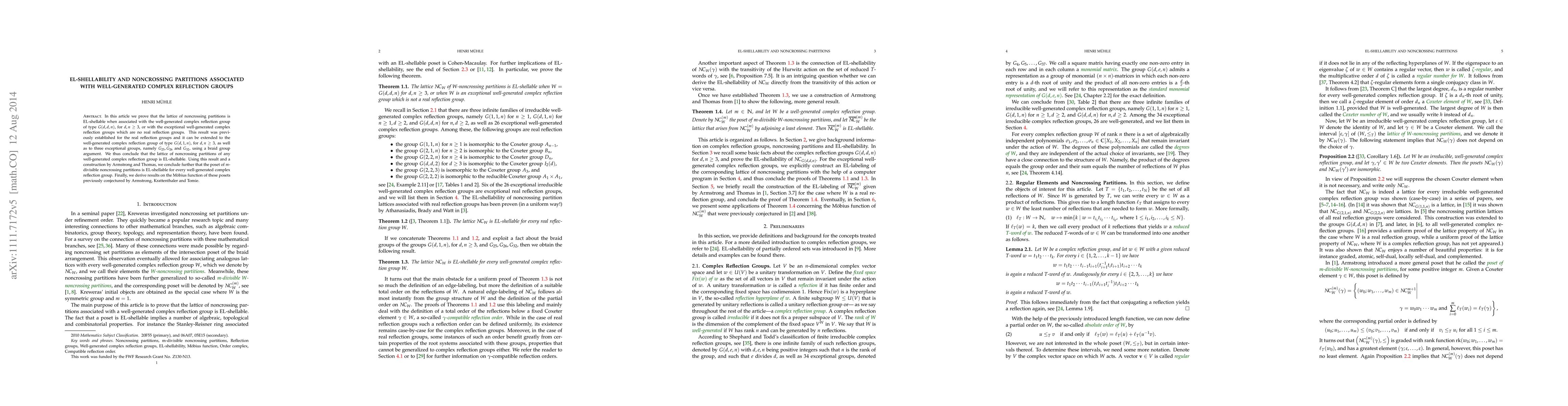 This paper proves that the lattice of noncrossing partitions is EL-shellable for well-generated complex reflection groups, extending earlier results for real reflection groups to include specific exceptional cases using braid group arguments. It concludes with the EL-shellability of the poset of m-divisible noncrossing partitions and verifies related Möbius function conjectures.