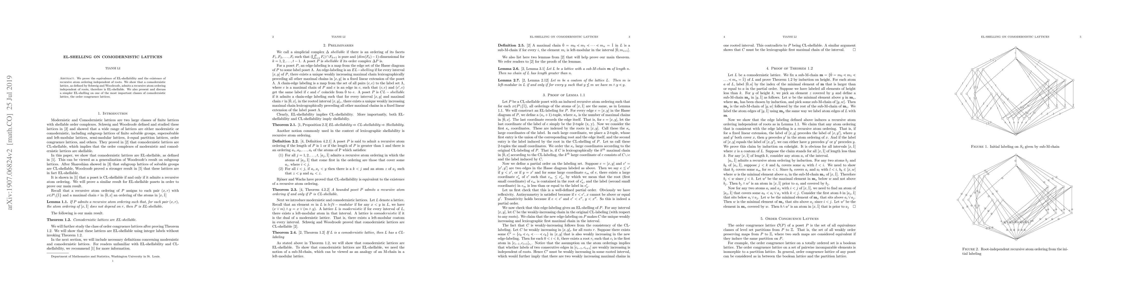 We prove the equivalence of EL-shellability and the existence of recursive atom ordering independent of roots. We show that a comodernistic lattice, as defined by Schweig and Woodroofe, admits a recursive atom ordering independent of roots, therefore is EL-shellable. We also present and discuss a simpler EL-shelling on one of the most important classes of comodernistic lattice, the order congruence lattices.