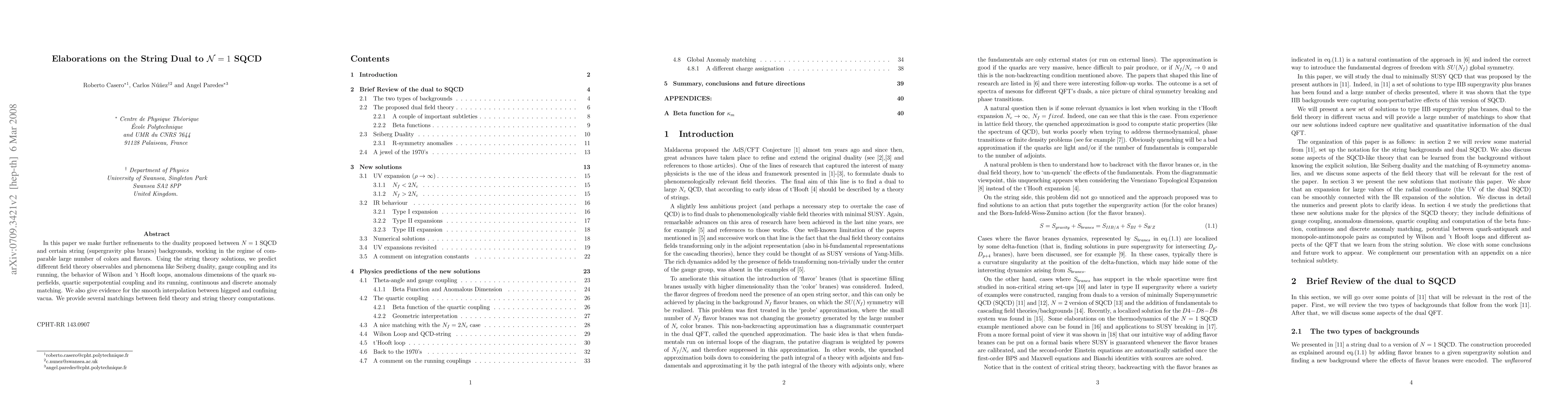 This paper refines the duality between N=1 SQCD and specific string theory backgrounds, predicting various field theory observables and phenomena including Seiberg duality and anomaly matching. It also provides evidence for transitions between higgsed and confining vacua, and offers matchings between field theory and string theory computations.