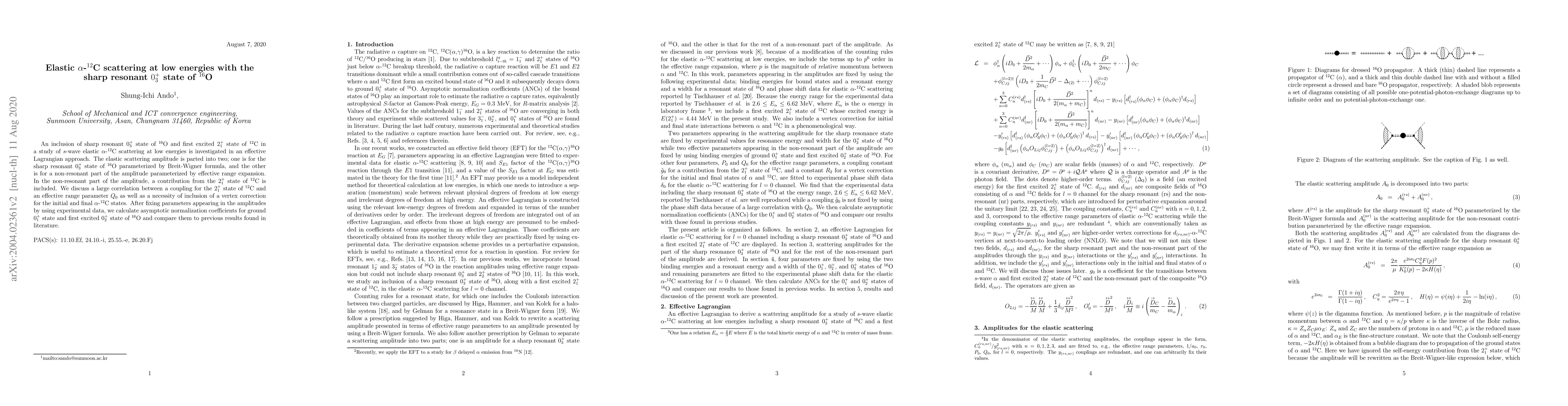 An inclusion of sharp resonant $0_3^+$ state of $^{16}$O and first excited $2_1^+$ state of $^{12}$C in a study of $s$-wave elastic $\alpha$-$^{12}$C scattering at low energies is investigated in an effective Lagrangian approach. The elastic scattering amplitude is parted into two; one is for the sharp resonant $0_3^+$ state of $^{16}$O parameterized by Breit-Wigner formula, and the other is for a non-resonant part of the amplitude parameterized by effective range expansion. In the non-resonant part of the amplitude, a contribution from the $2_1^+$ state of $^{12}$C is included. We discuss a large correlation between a coupling for the $2_1^+$ state of $^{12}$C and an effective range parameter $Q_0$ as well as a necessity of inclusion of a vertex correction for the initial and final $\alpha$-$^{12}$C states. After fixing parameters appearing in the amplitudes by using experimental data, we calculate asymptotic normalization coefficients for ground $0_1^+$ state and first excited $0_2^+$ state of $^{16}$O and compare them to previous results found in literature.