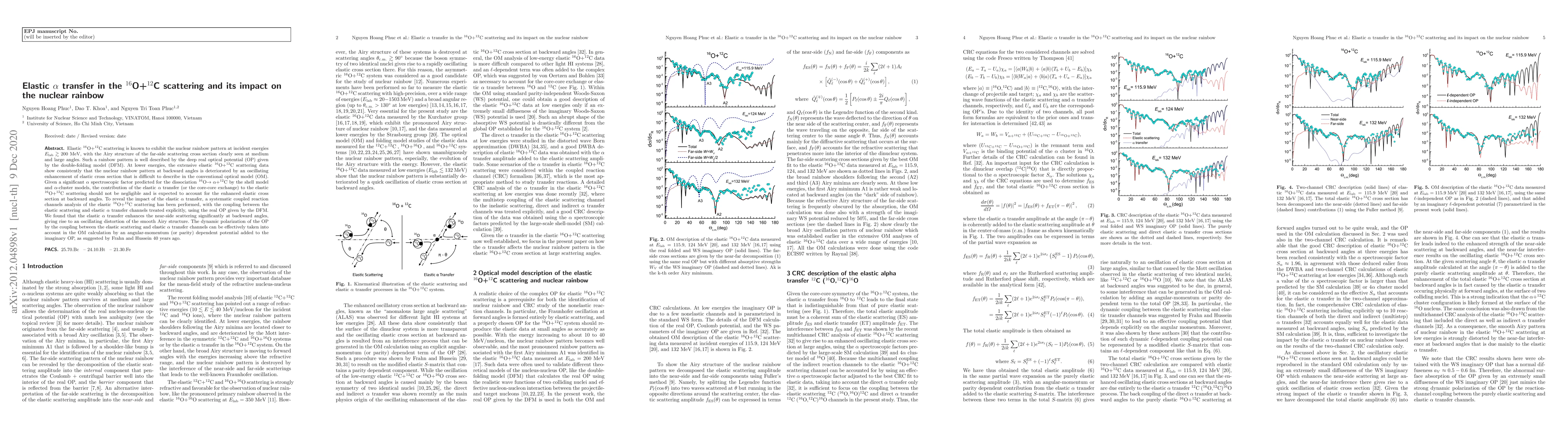 This paper investigates the elastic $^{16}$O+$^{12}$C scattering, revealing that the nuclear rainbow pattern is enhanced by elastic $\alpha$ transfer, which distorts the scattering cross section at backward angles. The study suggests a method to incorporate this effect into the optical model calculations.