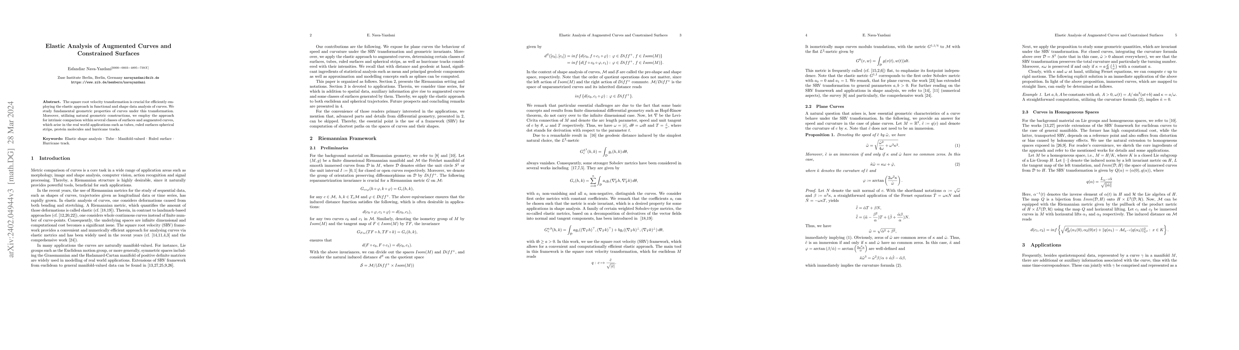This paper investigates the square root velocity transformation for analyzing curves and surfaces, focusing on fundamental geometric properties and their applications in comparing real-world objects like tubes, protein molecules, and hurricane tracks. The approach is numerically efficient and leverages natural geometric constructions.