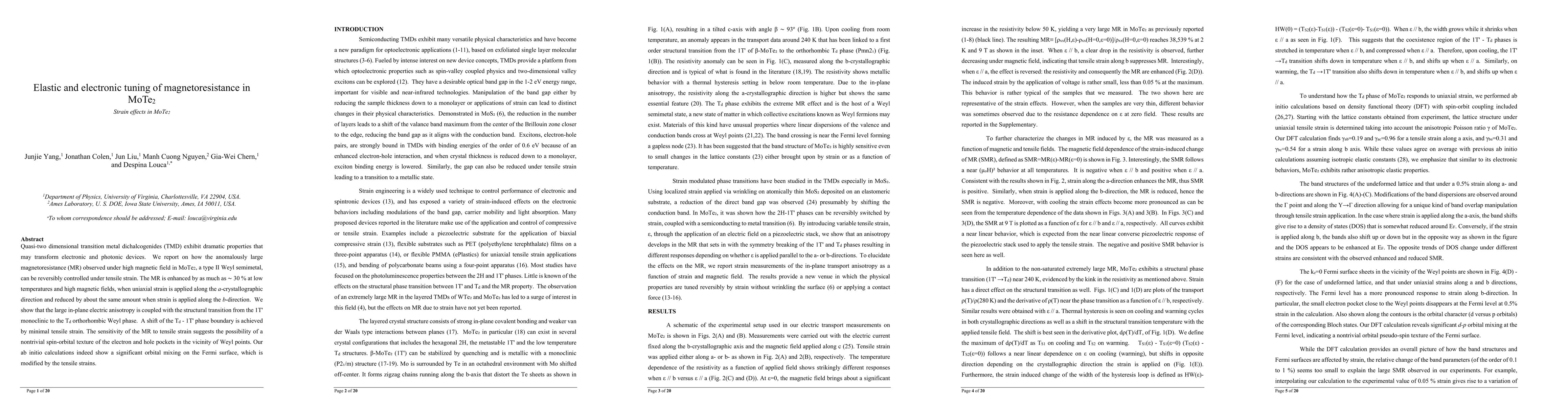 Quasi-two dimensional transition metal dichalcogenides (TMD) exhibit dramatic properties that may transform electronic and photonic devices. We report on how the anomalously large magnetoresistance (MR) observed under high magnetic field in MoTe$_2$, a type II Weyl semimetal, can be reversibly controlled under tensile strain. The MR is enhanced by as much as ~ 30 % at low temperatures and high magnetic fields, when uniaxial strain is applied along the $a$-crystallographic direction and reduced by about the same amount when strain is applied along the $b$-direction. We show that the large in-plane electric anisotropy is coupled with the structural transition from the 1T' monoclinic to the Td orthorhombic Weyl phase. A shift of the Td - 1T' phase boundary is achieved by minimal tensile strain. The sensitivity of the MR to tensile strain suggests the possibility of a nontrivial spin-orbital texture of the electron and hole pockets in the vicinity of Weyl points. Our ab initio calculations indeed show a significant orbital mixing on the Fermi surface, which is modified by the tensile strains.