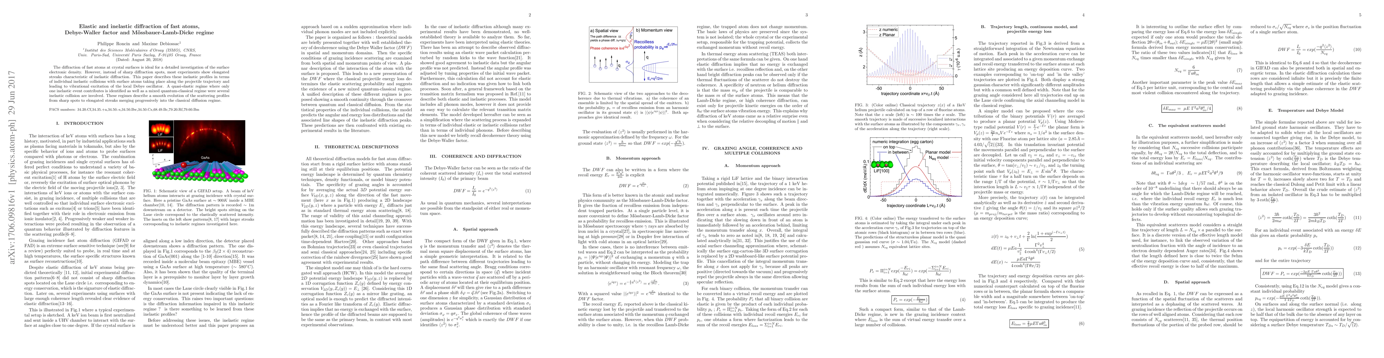 The diffraction of fast atoms at crystal surfaces is ideal for a detailed investigation of the surface electronic density. However, instead of sharp diffraction spots, most experiments show elongated streaks characteristic of inelastic diffraction. This paper describes these inelastic profiles in terms of individual inelastic collisions with surface atoms taking place along the projectile trajectory and leading to vibrational excitation of the local Debye oscillator. A quasi-elastic regime where only one inelastic event contributes is identified as well as a mixed quantum-classical regime were several inelastic collision are involved. These regimes describe a smooth evolution of the scattering profiles from sharp spots to elongated streaks merging progressively into the classical diffusion regime.
