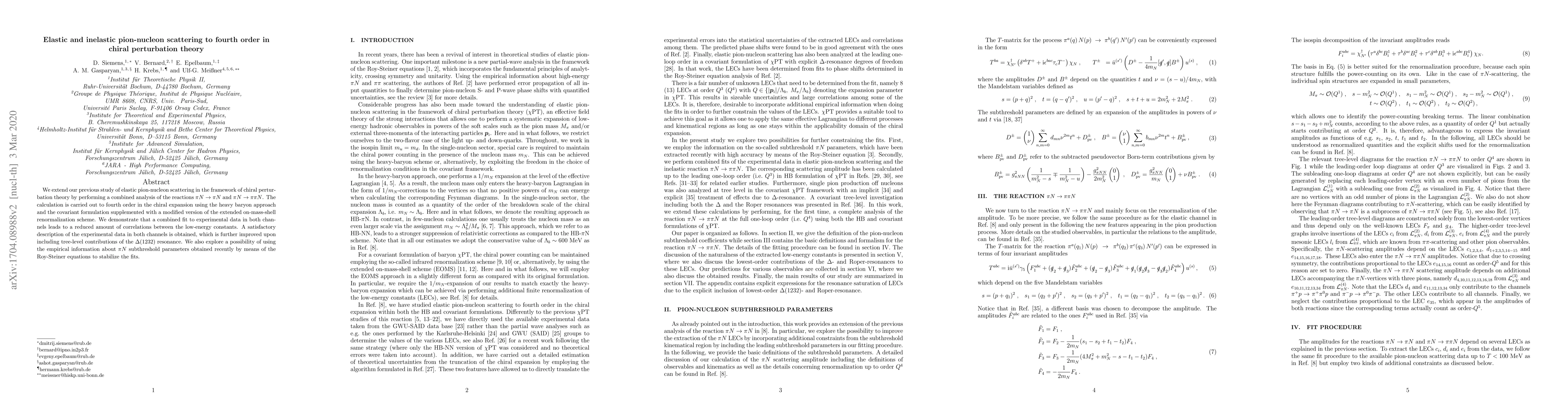 This paper extends chiral perturbation theory to fourth order for elastic and inelastic pion-nucleon scattering, achieving a better fit to experimental data and reducing correlations between low-energy constants through combined analysis of $\pi N \to \pi N$ and $\pi N \to \pi \pi N$ reactions. The study also explores the use of empirical subthreshold parameters to stabilize the results.