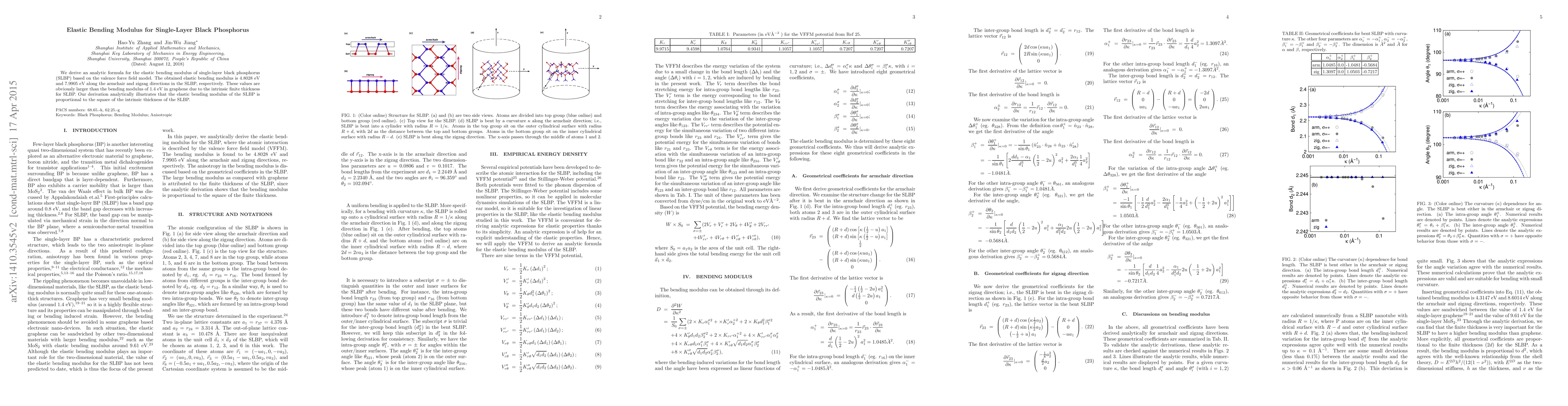 The research derives an analytic formula for the elastic bending modulus of single-layer black phosphorus, finding values of 4.8028 eV and 7.9905 eV along the armchair and zigzag directions, respectively, significantly higher than graphene's due to the material's finite thickness. The modulus is shown to be proportional to the square of the intrinsic thickness.