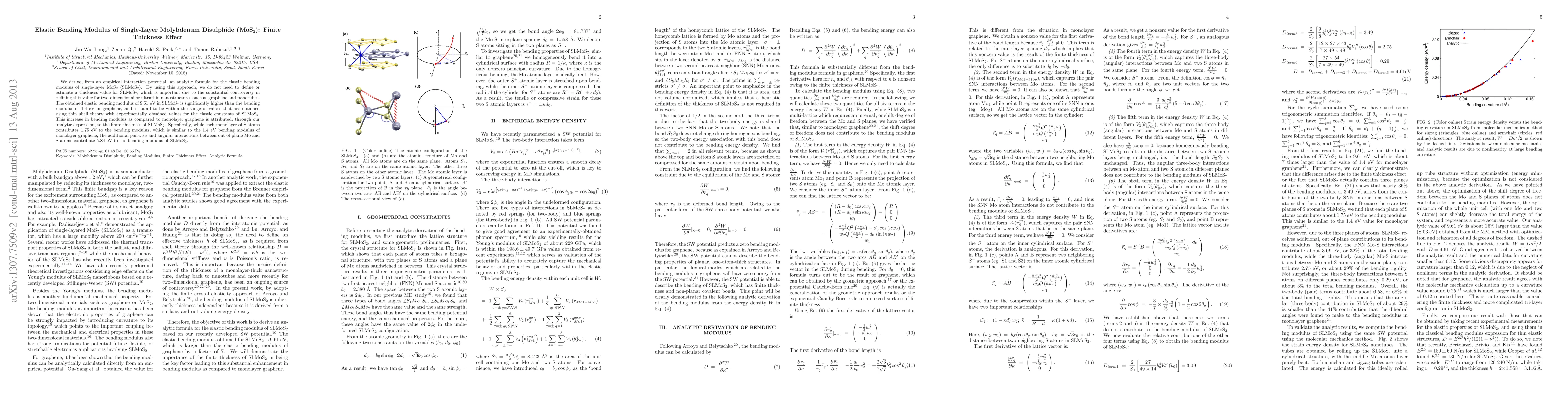 This study derives an analytic formula for the elastic bending modulus of single-layer MoS2 (SLMoS2) without defining its thickness, finding it to be 9.61 eV—significantly higher than graphene's 1.4 eV. The increase is attributed to additional interactions between Mo and S atoms in SLMoS2.