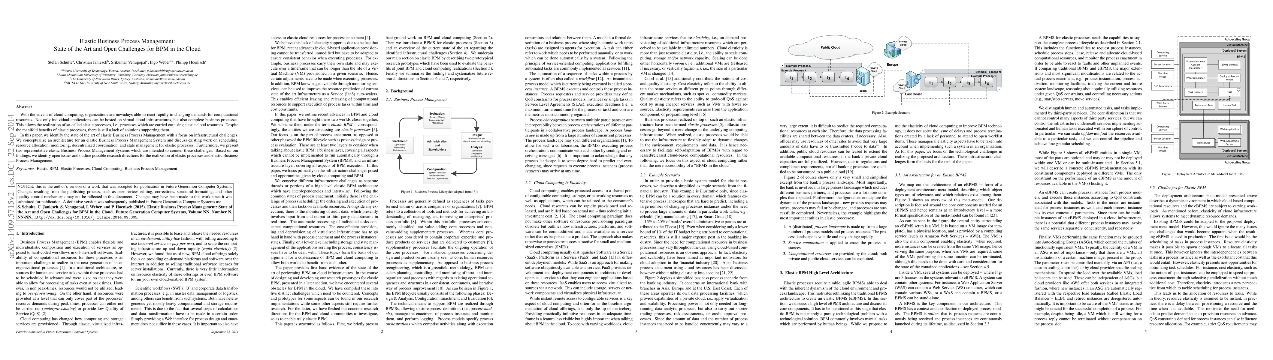 This paper reviews the current state of elastic Business Process Management (BPM) in cloud environments, highlighting infrastructural challenges and presenting conceptual architecture for elastic BPM systems. It identifies open issues and suggests future research directions to address the lack of solutions for managing elastic processes.