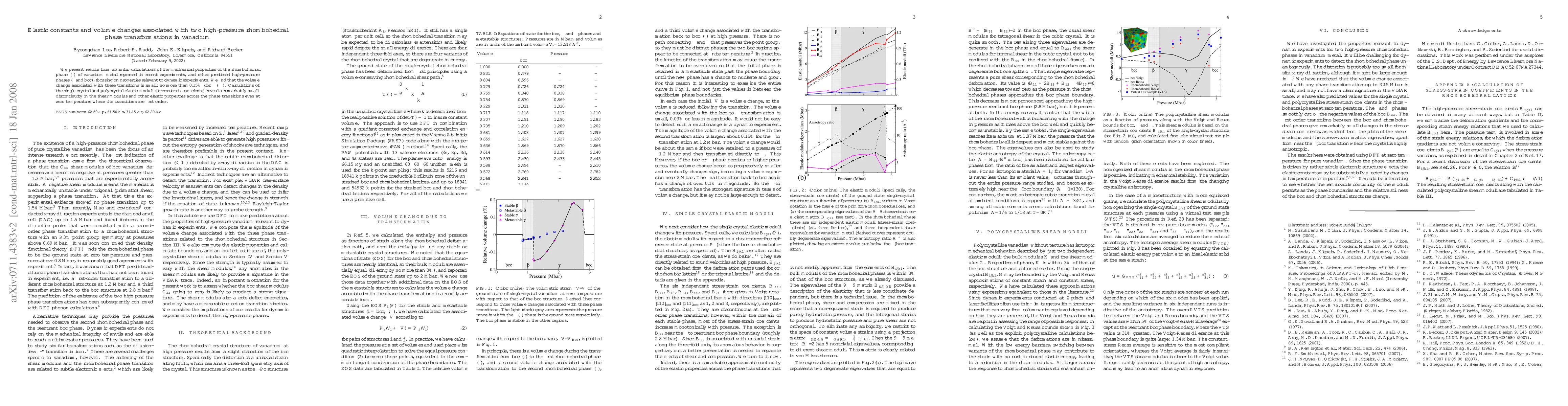This study uses ab initio calculations to investigate the mechanical properties of vanadium metal's rhombohedral phase and two high-pressure phases. Results show minimal volume changes (≤0.15%) and small discontinuities in elastic moduli during phase transitions, even at zero temperature.