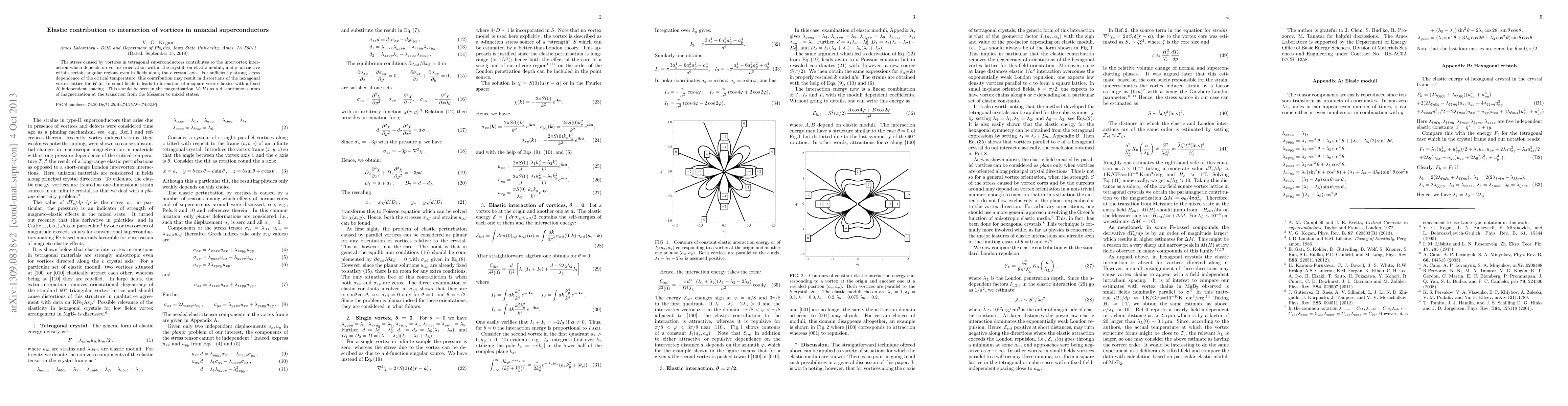The stress caused by vortices in tetragonal superconductors contributes to the intervortex interaction which depends on vortex orientation within the crystal, on elastic moduli, and is attractive within certain angular regions even in fields along the $c$ crystal axis. For sufficiently strong stress dependence of the critical temperature, this contribution may result in distortions of the hexagonal vortex lattice for $\bm H||\bm c$. In small fields it leads to formation of a square vortex lattice with a fixed $H$ independent spacing. This should be seen in the magnetization $M(H)$ as a discontinuous jump of magnetization at the transition from the Meissner to mixed states.