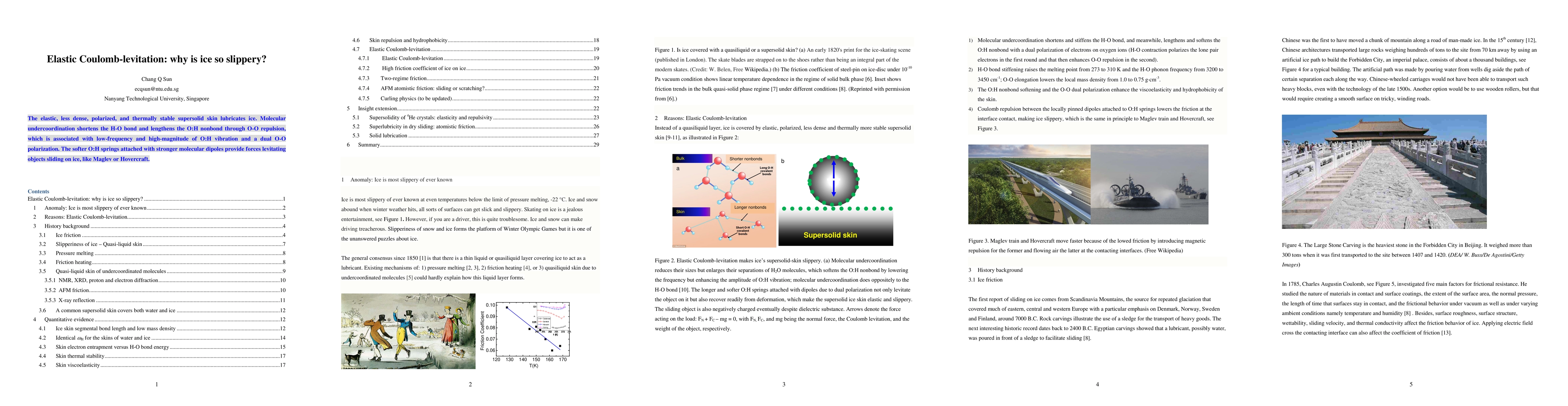 Elastic Coulomb-levitation occurs when ice's slippery surface is lubricated by a supersolid skin with short H-O bonds and strong molecular dipoles, enabling objects to levitate on ice.