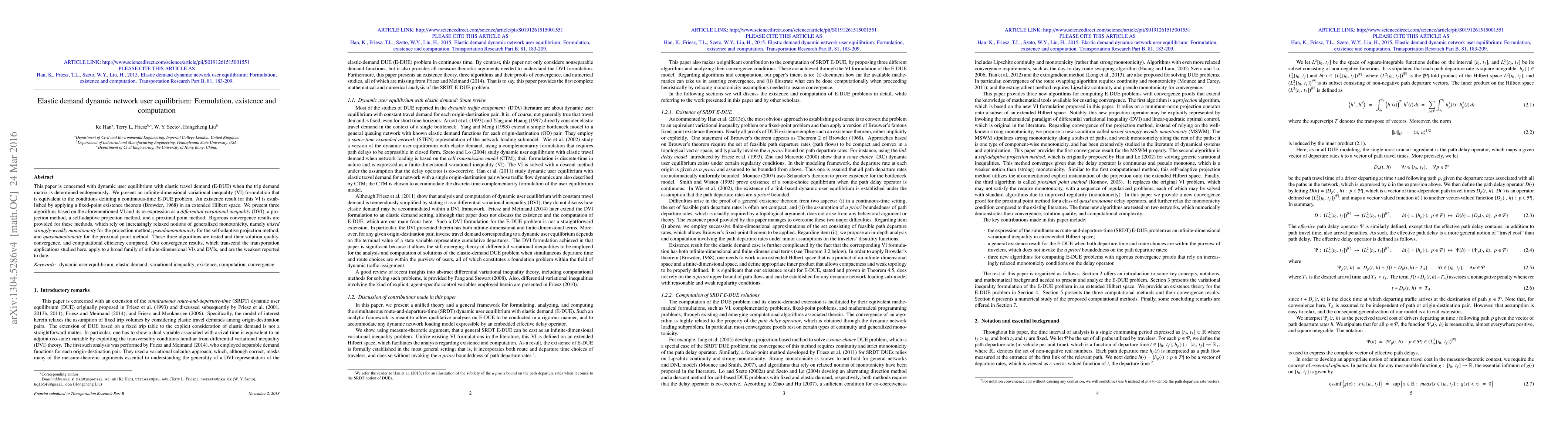 This paper is concerned with dynamic user equilibrium with elastic travel demand (E-DUE) when the trip demand matrix is determined endogenously. We present an infinite-dimensional variational inequality (VI) formulation that is equivalent to the conditions defining a continuous-time E-DUE problem. An existence result for this VI is established by applying a fixed-point existence theorem (Browder, 1968) in an extended Hilbert space. We present three algorithms based on the aforementioned VI and its re-expression as a differential variational inequality (DVI): a projection method, a self-adaptive projection method, and a proximal point method. Rigorous convergence results are provided for these methods, which rely on increasingly relaxed notions of generalized monotonicity, namely mixed strongly-weakly monotonicity for the projection method; pseudomonotonicity for the self-adaptive projection method, and quasimonotonicity for the proximal point method. These three algorithms are tested and their solution quality, convergence, and computational efficiency compared. Our convergence results, which transcend the transportation applications studied here, apply to a broad family of infinite-dimensional VIs and DVIs, and are the weakest reported to date.